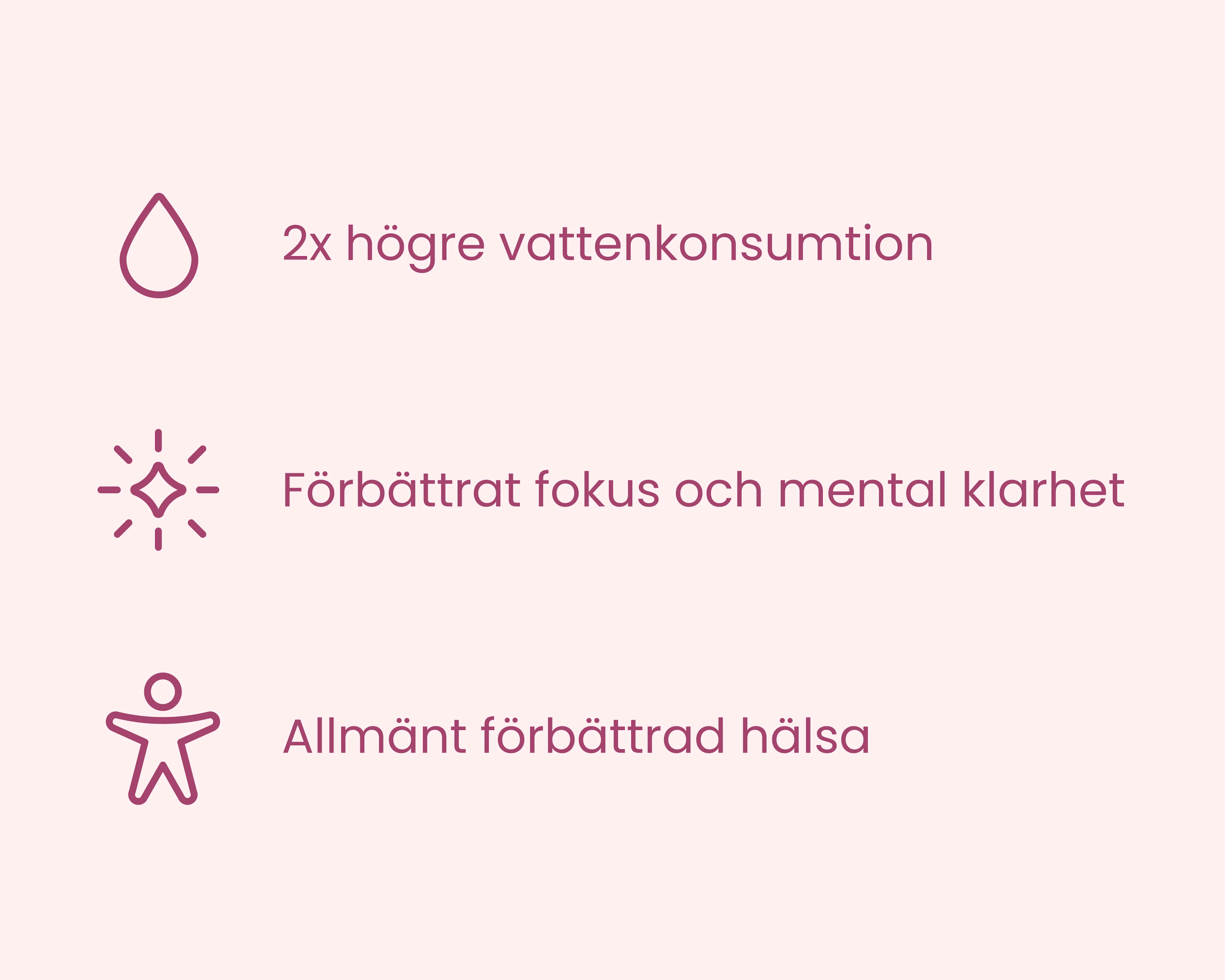 Att dricka vatten är viktigt för att kroppen ska fungera optimalt. Vatten spelar en viktig roll i många kroppsfunktioner, som matsmältningen, att behålla en hälsosam hud och att öka energinivåerna. Genom att hålla dig ordentligt hydrerad – det vill säga genom att ha en bra vätskenivå i kroppen – stödjer du din fysiska hälsa och känner dig piggare och redo att möta dagen.